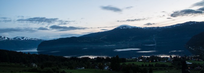 Blick auf den Innvikfjord aus dem Fenster unseres Ferienhauses